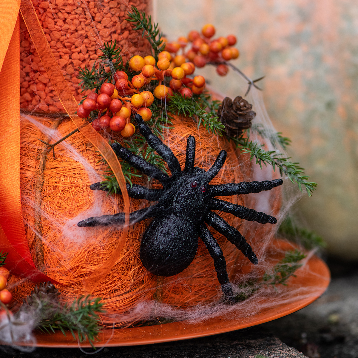 Egal wo oder wie Sie Spinnen und Fledermaus platzieren, sie werden in jedem Fall ein Blickfang sein. Sie können die Glitzertierchen aber nicht nur ins Fenster hängen oder auf`s Buffet stellen, sondern sie beispielsweise auch zur eigenen Deko nutzen. Peppen Sie damit doch Ihr Party-oder Faschingskostüm auf! Einfach mit etwas Heißkleber eine Haarspange an der Unterseite der Spinne befestigt, fertig ist ein tolles Grusel-Accessoire.