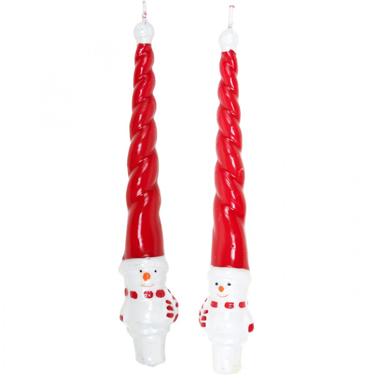 Spitzkerzen Schneemann Kerze Weihnachten Rot 26cm 2St