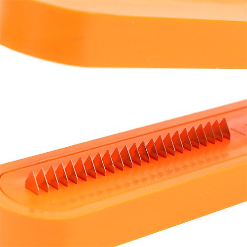 Der Splitter, gefertigt aus robustem Kunststoff mit präzisen, scharfen Metallzähnen, verspricht Langlebigkeit und höchste Qualität. Seine Handhabung ist spielend einfach: Polybänder lassen sich in nur einem Arbeitsgang teilen und kräuseln, um exquisite Texturen und Effekte zu erzielen. Mit einer Länge von ca. 14 Zentimetern und einer 4,5 Zentimeter langen Zahnreihe ist dieser Ringelbandspleißer ideal für professionelle Floristik und den Einsatz im eigenen Heim.