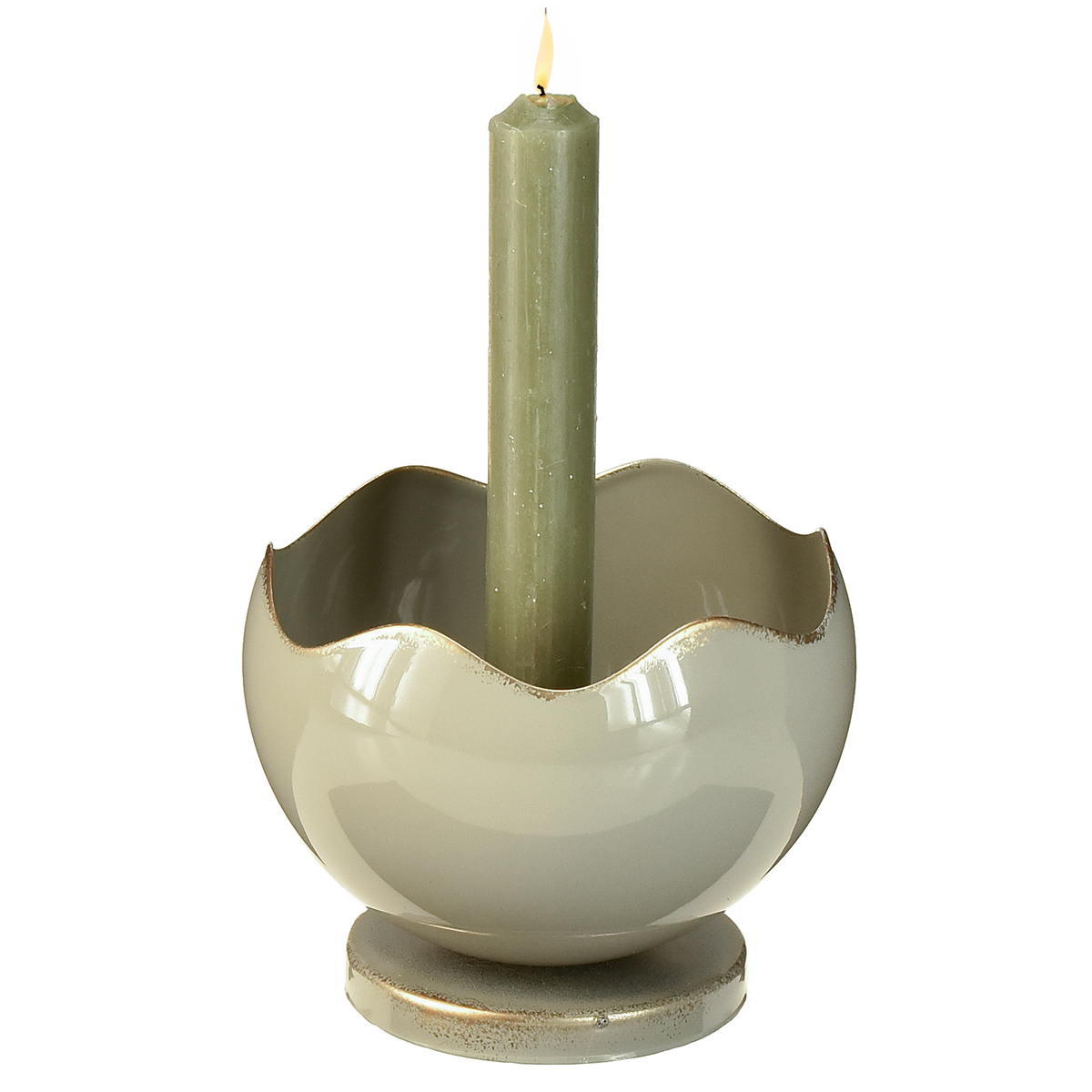 Der Stabkerzenhalter aus grauem Metall mit Rändern in Gold ist die perfekte Ergänzung für Ihre Tischdekoration. Mit einer stilisierten Blütenform, die an den Jugendstil erinnert, verleiht dieser Kerzenhalter jedem Raum eine romantische Note. Die glänzende graugrüne Farbe und goldene Ränder schaffen ein luxuriöses Ambiente, das sowohl für festliche Tischdeko als auch für stilvolle Weihnachtsfeiern geeignet ist. Ein ideales Accessoire für romantische Abende, das durch seine moderne Interpretation eines klassischen Designs besticht. Gefertigt aus hochwertigem Metall, verspricht dieser Kerzenhalter nicht nur Stabilität, sondern auch Langlebigkeit. In Kombination mit anderen Wohnaccessoires aus der Floristik24-Kollektion lässt sich ein harmonisches Gesamtbild erzielen, das Ihrem Wohnraum einen modernen und dennoch klassischen Touch verleiht. Entdecken Sie die kunstvolle Verbindung von Funktionalität und Ästhetik mit diesem besonderen Kerzenhalter.