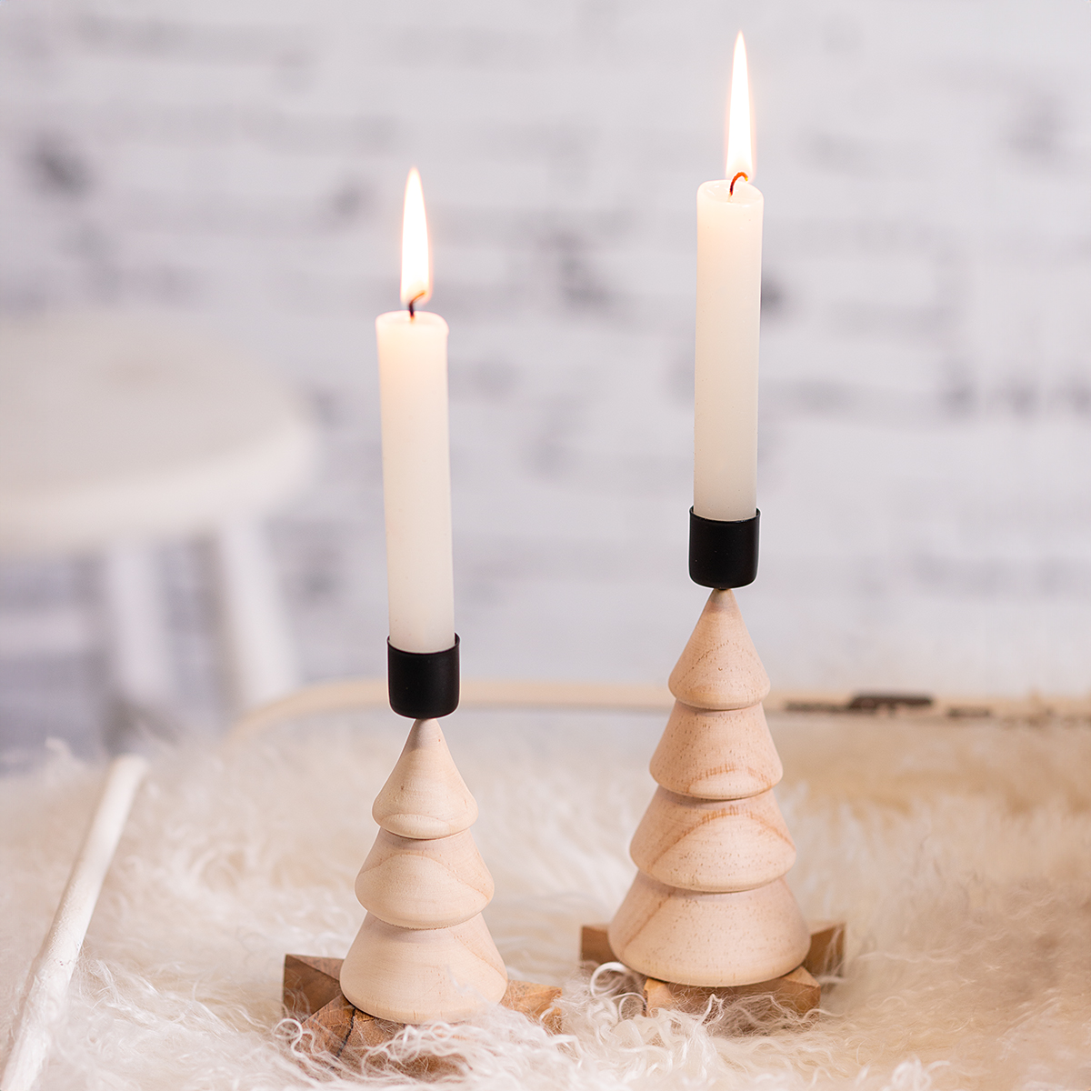 Stabkerzenhalter auf Holz-Tannenbaum – ein Muss für weihnachtliche Stimmung!