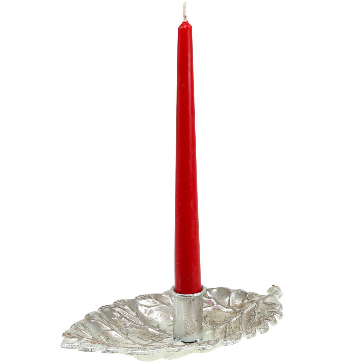 Stabkerzenhalter Teller Laubblatt Silbern 22x13,5x5,5cm