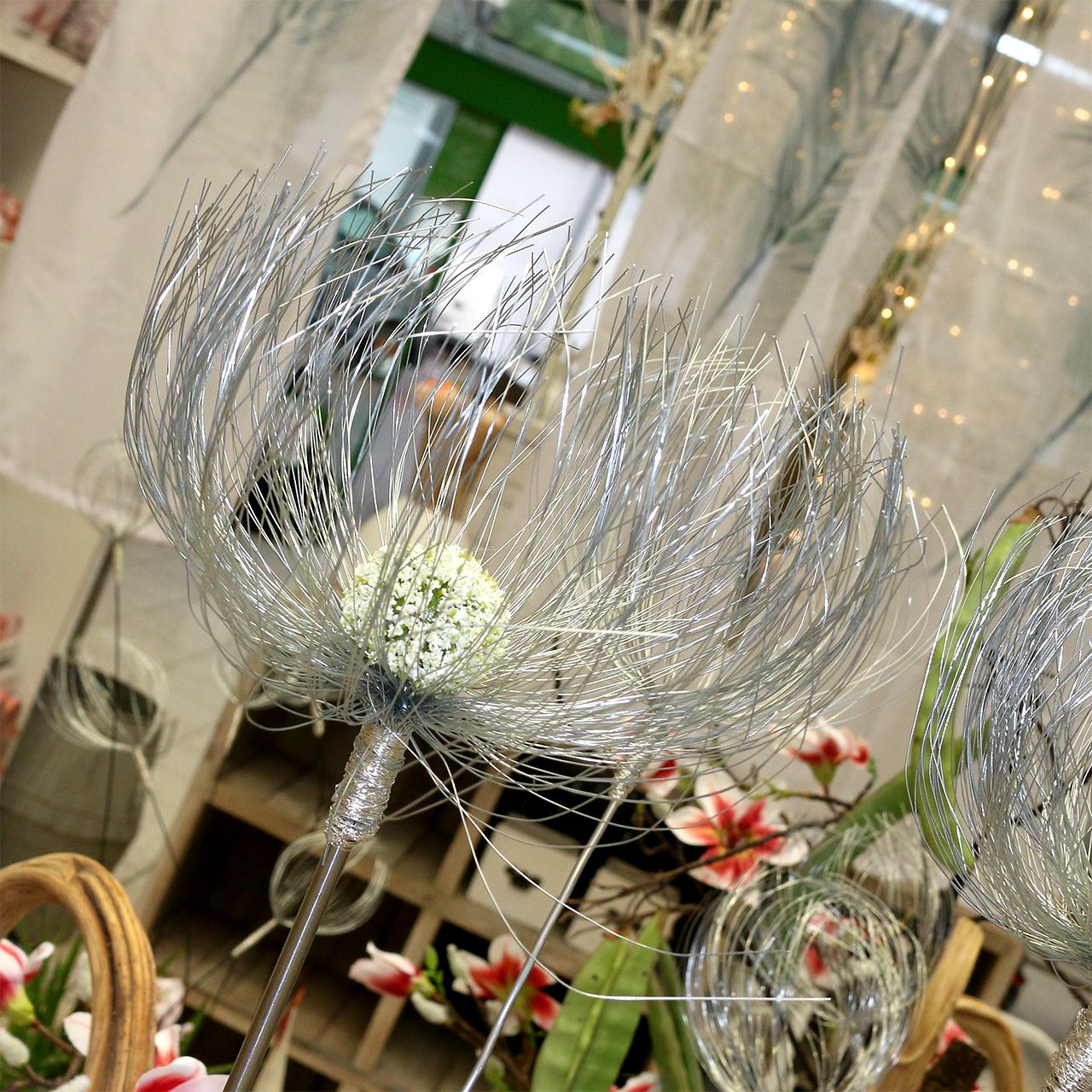 So können Sie auch eine Raumdekoration in Ihrem Verkaufsraum präsentieren und damit an einem Gerüst, einer Zimmerpflanze oder einer Deckenlampe anbringen. Aber auch für eine Messedekoration können Sie den Wickeldraht verwenden und temporäre Dekorationen befestigen und nach der Veranstaltung einfach wieder entfernen. Dabei passt der Blumendraht auch hervorragend in Steckschaum und Stroh, sodass Sie damit ganz bequem einen Tischkranz oder einen Trauerkranz herstellen können.