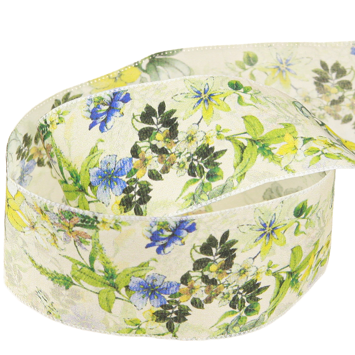 Stoffband mit Blumen Dekoband Grün Blau Gelb 40mm 15m