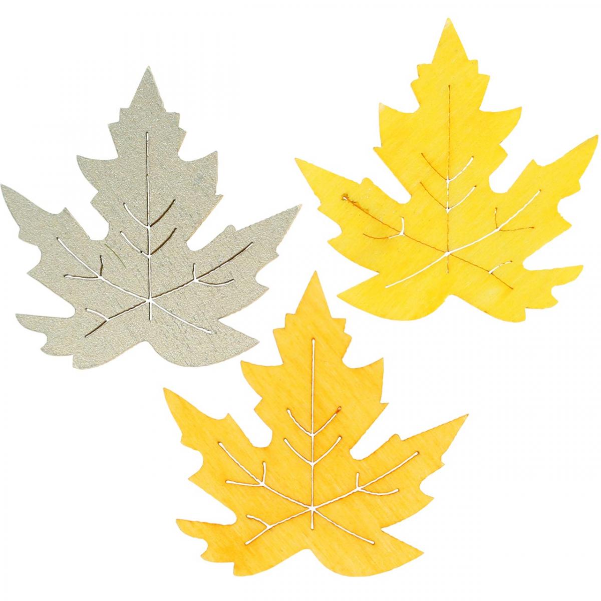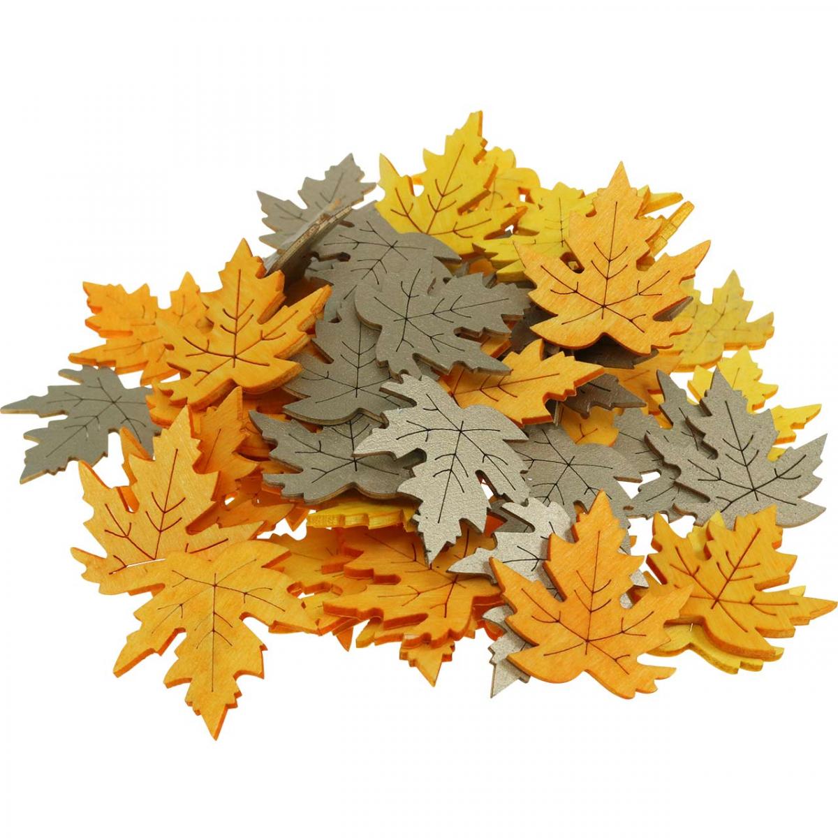 Produktname: Streudeko Herbst, Ahorn-Blätter, Herbstlaub Golden, Orange, Gelb 4cm 72 St