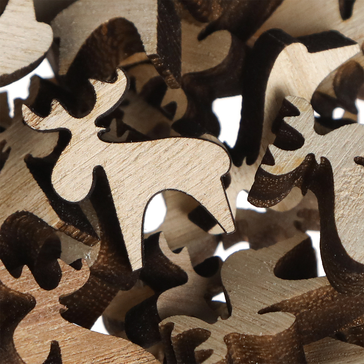 Die kleinen Holzteile eignen sich exzellent als Weihnachtsstreudeko. Durch die naturbelassene Optik mit dunkelbraunen Rändern bringt sie Gemütlichkeit in Ihr Zuhause. Statt diese Holzteile zu streuen, lassen sie sich für viele andere Verwendungsmöglichkeiten nutzen. Füllen Sie die Streuteile zum Beispiel in ein Glas ein. Schon haben Sie eine angesagte rustikale Tischdeko aus Holz und Glas. Bringen Sie die Elch-Deko an einen Kranz an, indem Sie die Streuteile am Geweih oder Hals mit einem dünnen Draht umwickeln und diese somit andrahten können. Auch als kreativer Geschenkanhänger, baumelnd an einem Nylonfaden, macht sich diese Holzdeko sehr schön. Sie sehen, diese kleinen rustikalen Holz-Elche sind vielseitig einsetzbar.