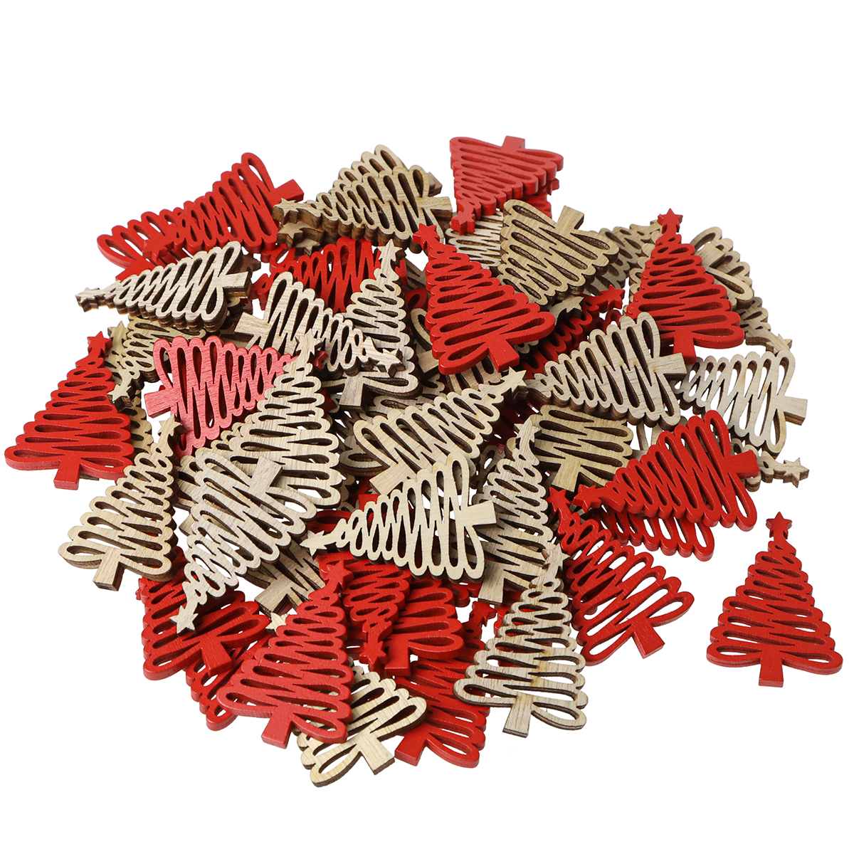 Streuteile Holz Tanne mit Stern Natur Rot 3x4,5cm 72 St