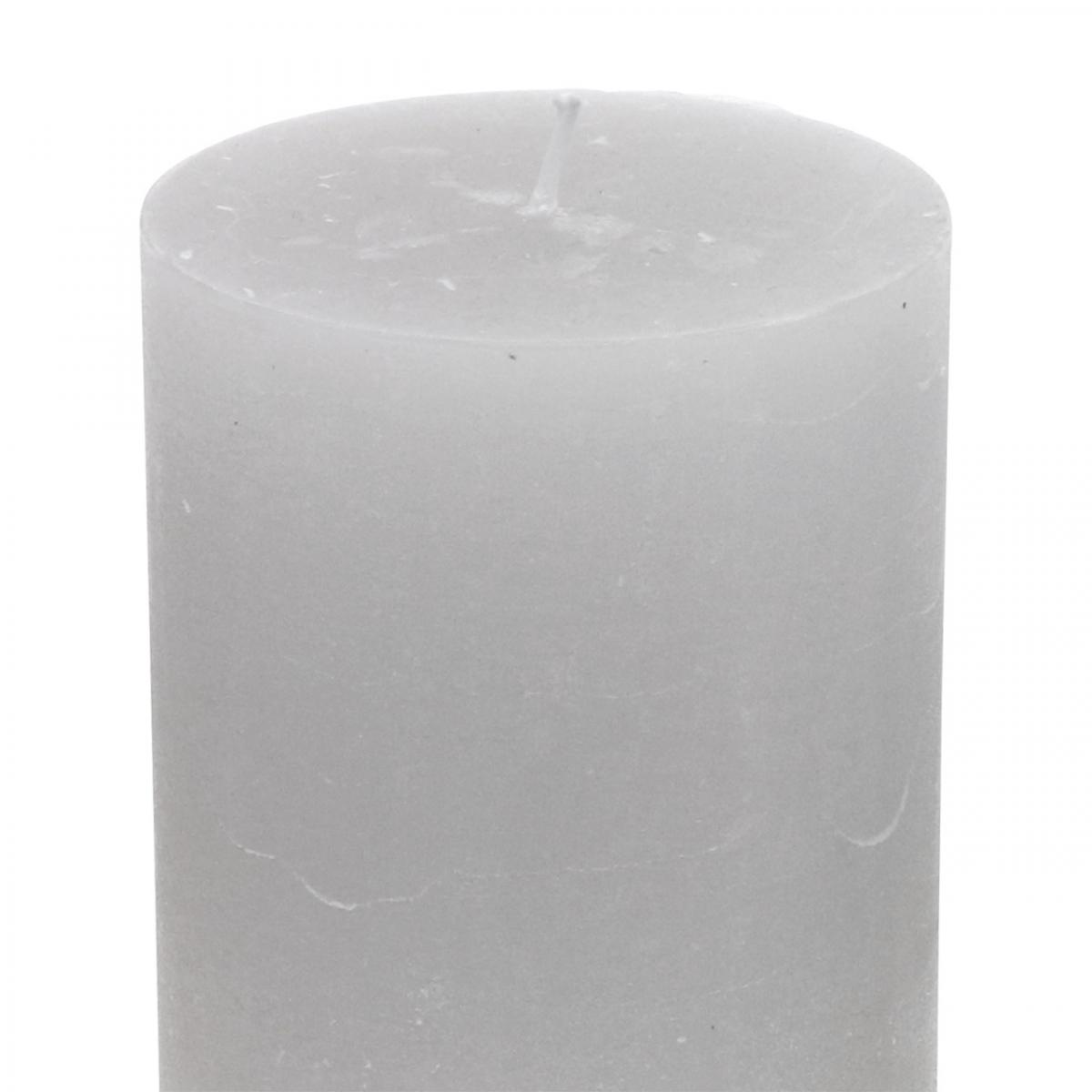 Produktname: Stumpenkerzen durchgefärbt Hellgrau 70×100mm 4St für Tischdeko, Hochzeiten, Weihnachten
