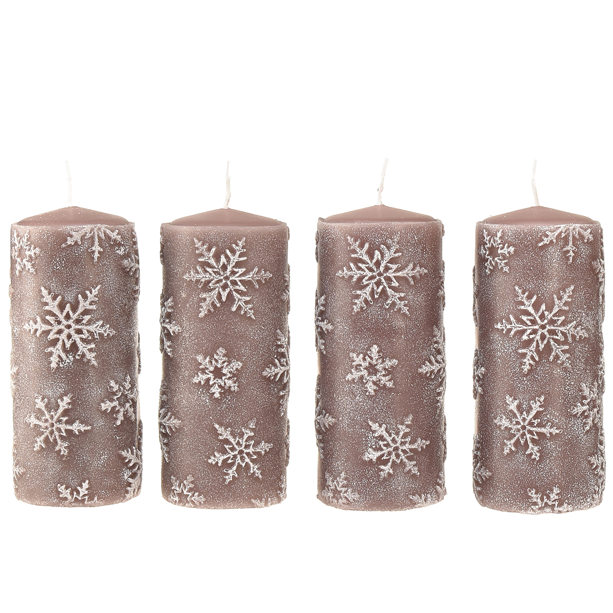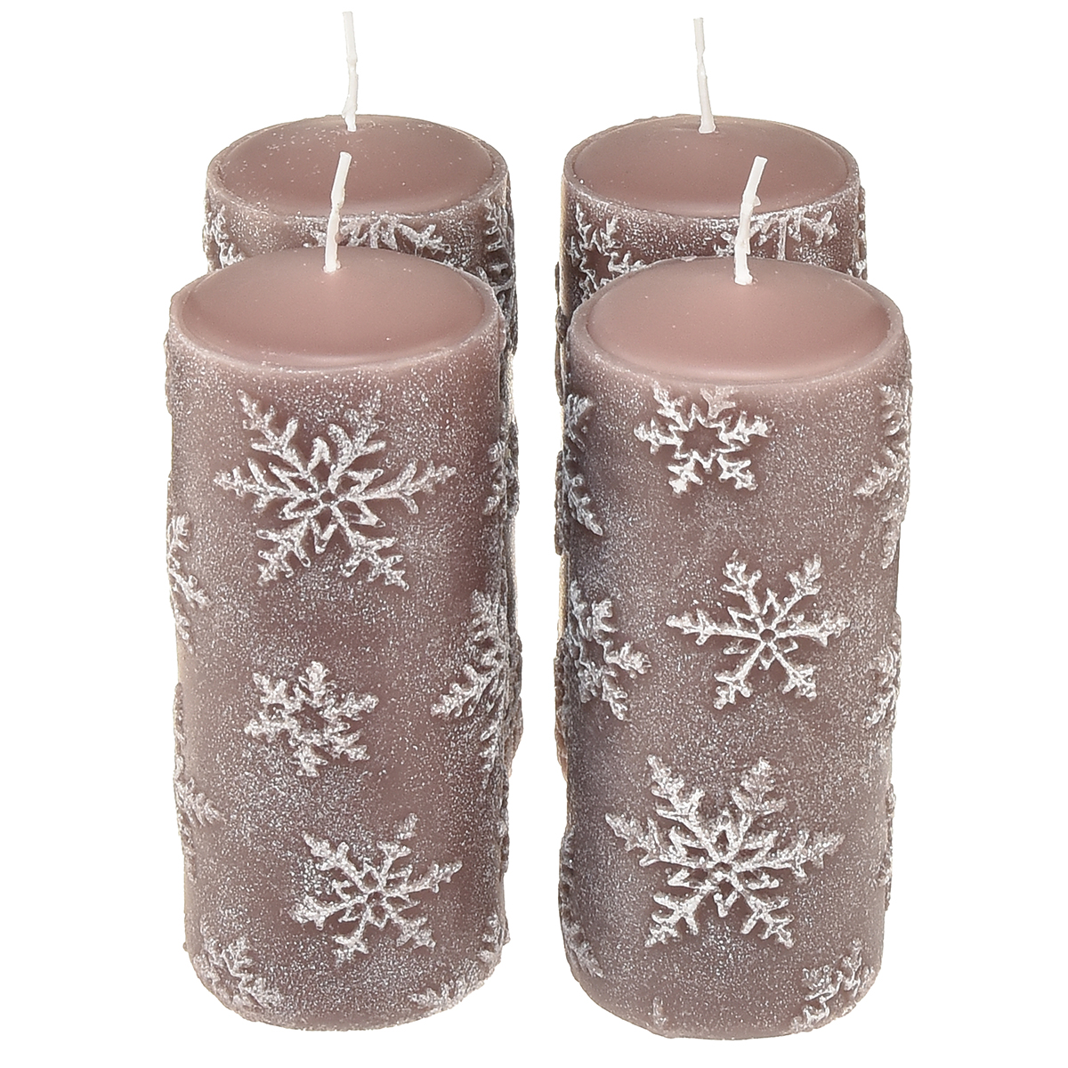 Stumpenkerzen Rosa Kerzen Schneeflocken 150/65mm 4 St