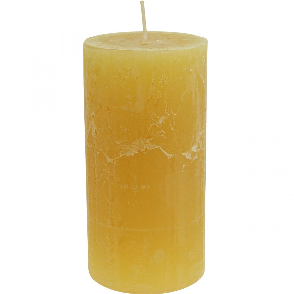 Produktname: Rustikale Stumpenkerzen Gelb Durchgefärbt für Adventskranz & Windlicht, 4er Set, 70/140mm