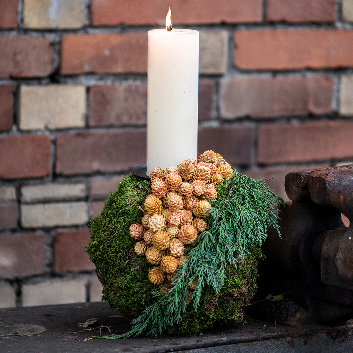- Tischkranz mit Windlicht