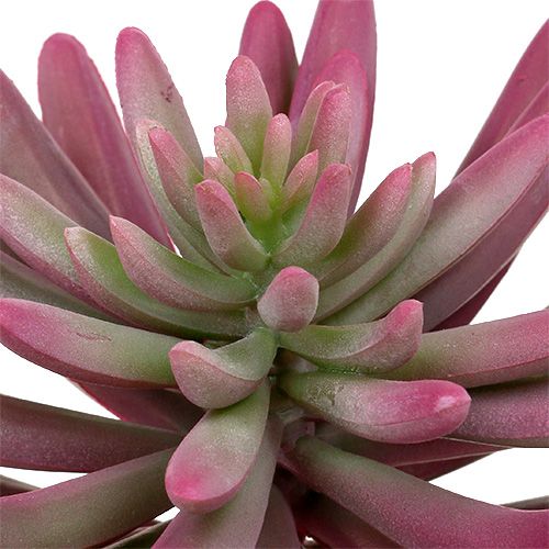 Schmücken Sie mit dieser hübschen und künstlichen Sukkulente in Lila einen Tisch, einen Fenstersims oder auch eine Kommode! Die Kunstpflanze sieht von oben aus wie ein Stern oder eine exotische Blüte und besitzt dazu noch einen kleinen Grünstich. Der Kopf mündet nach unten hin in einen kleinen konischen Stiel, mit dem Sie die Deko-Pflanze einarbeiten können. Damit haben Sie dann die Möglichkeit, den künstlichen Kaktus in etwas Blumenerde zu stecken, um Ihre Topfpflanzen optisch zu ergänzen.Sie können aber auch einen Glasbecher mit etwas Sand oder Dekogranulat füllen und dann die Kunstpflanze hineinstellen, damit sie genug Halt findet. Das Ganze können Sie dann prima auf einem Wohnzimmertisch oder auch einem Esstisch platzieren, um so eine originelle Tischdekoration zu kreieren. Wenn Sie diesen Deko-Stil im größeren Format, zum Beispiel mit weiteren künstlichen Kakteen, Steinen und etwas Schwemmholz, ausbauen, erhalten Sie eine tolle Wüsten-Deko, die besonders schön in den Sommer passt!