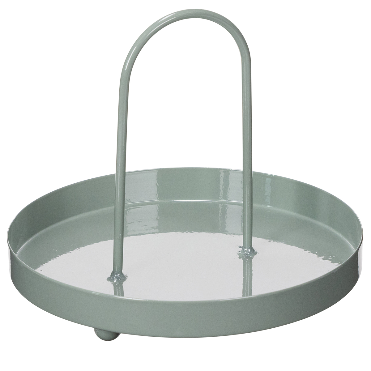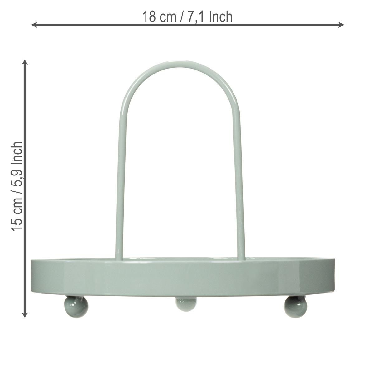 Dieses Tablett vereint Eleganz und Praktikabilität auf besondere Weise. Mit einem Durchmesser von 18 cm und einer Höhe von 15 cm schafft es die perfekte Bühne für alltägliche und besondere Momente. Der hohe Metallgriff erleichtert nicht nur das Tragen, er setzt auch optisch Akzente. Das Material strahlt Stabilität aus, während die grüne Oberfläche eine herrlich frische und natürliche Note in Ihre Einrichtung bringt. Auf der Arbeitsplatte bietet es Platz für Kräutertöpfchen oder Flaschen mit Gewürzölen. Möchten Sie auf dem Wohnzimmertisch eine dekorative Sammlung von Teelichtern und Vasen arrangieren? Mit diesem Dekoelement gelingt Ihre Gestaltung im Nu. Selbst als Obstschale macht es sich hervorragend: Einfach Obst sortieren, präsentieren, und voilà – Sie haben eine moderne und praktische Lösung gefunden! Ein weiteres Highlight ist seine Vielseitigkeit: Das Tablett bringt nicht nur Ordnung und Stil in die Küche, sondern lässt sich auch hervorragend als nützlicher Begleiter für Buffets oder Gartenpartys einsetzen. Tipp: Kombinieren Sie das Tablett mit anderen Dekoartikeln im skandinavischen oder rustikalen Stil und schaffen Sie eine stimmige Wohnatmosphäre.