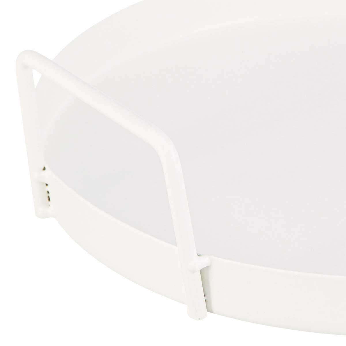 Mit einem Durchmesser von 30 cm und einer Höhe von 3 cm bietet das weiße, runde Tablett ausreichend Platz, um Getränke, Snacks oder Deko-Arrangements sicher zu präsentieren. Die hohen, stabilen Griffe erleichtern das Tragen und machen das Servieren kinderleicht – ob beim Dinner im Garten oder bei der nächsten Geburtstagsparty. Zudem verhindert die leicht erhöhte Kante, dass Gläser oder Teller verrutschen. Einfach clever! Das glatte, weiße Metall punktet nicht nur durch seine schlichte Eleganz, sondern ist auch besonders pflegeleicht. Ein feuchtes Tuch genügt, und schon erstrahlt das Tablett wieder in voller Schönheit. Kombinieren Sie das Serviertablett mit zarten Kerzen, rustikalen Holzdeko-Elementen oder frischen Blumen: Seine neutrale Farbe lässt Ihrer Kreativität freien Lauf. Besonders toll wirkt es in einer Kombination mit weiteren weißen Accessoires oder auch in Kontrast zu dunkleren Möbelstücken. Ob im Haushalt oder in der Gastronomie – dieses Tablett ist ein echter Allrounder. Sie können es als Küchentablett nutzen, Gewürze oder Küchenutensilien organisieren oder es als stilvolles Deko-Element einsetzen. Sogar als Basis für kleine DIY-Projekte eignet es sich hervorragend. Wer es minimalistisch mag, wird begeistert sein: Funktionalität trifft hier auf klares Design!