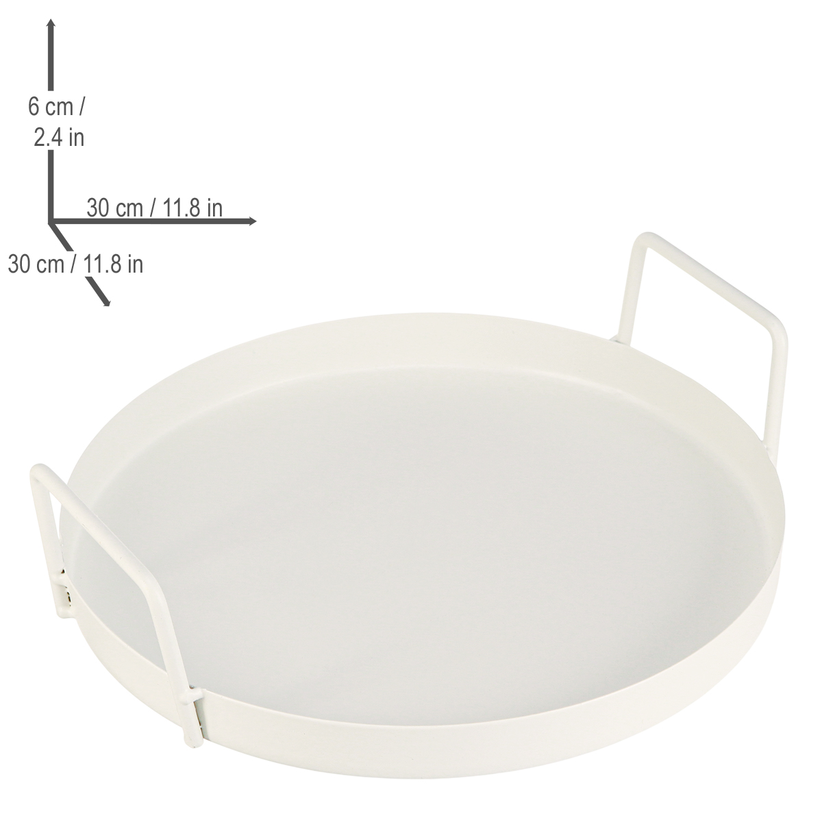 Stilvoll, praktisch und vielseitig einsetzbar – dieses runde Tablett vereint alles, was ein moderner Haushaltshelfer mitbringen sollte. Mit seinen praktischen Griffen und der eleganten weißen Farbe wird es nicht nur zum funktionalen Begleiter, sondern auch zu einem echten Hingucker in Ihrem Zuhause. Sie planen ein gemütliches Frühstück im Bett, ein lockeres Dinner mit Freunden oder suchen das perfekte Accessoire für Ihre Dekoideen? Kein Problem! Dieses Tablett unterstützt Sie bei unzähligen Anlässen und macht dabei immer eine gute Figur. Seine robuste Verarbeitung aus Metall sorgt für Stabilität und Langlebigkeit, während das schlichte Design sich mühelos in jede Einrichtung einfügt, ob Landhausstil oder moderner Minimalismus. Warum also Kompromisse eingehen, wenn Sie Funktionalität und Ästhetik in einem haben können? Unsere Empfehlung: Probieren Sie es aus, und Sie werden bald nicht mehr darauf verzichten wollen.