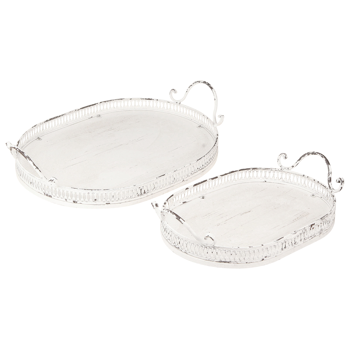 Shabby Chic Tablett oval mit Griffen Weiß 36/45cm Set à 2St