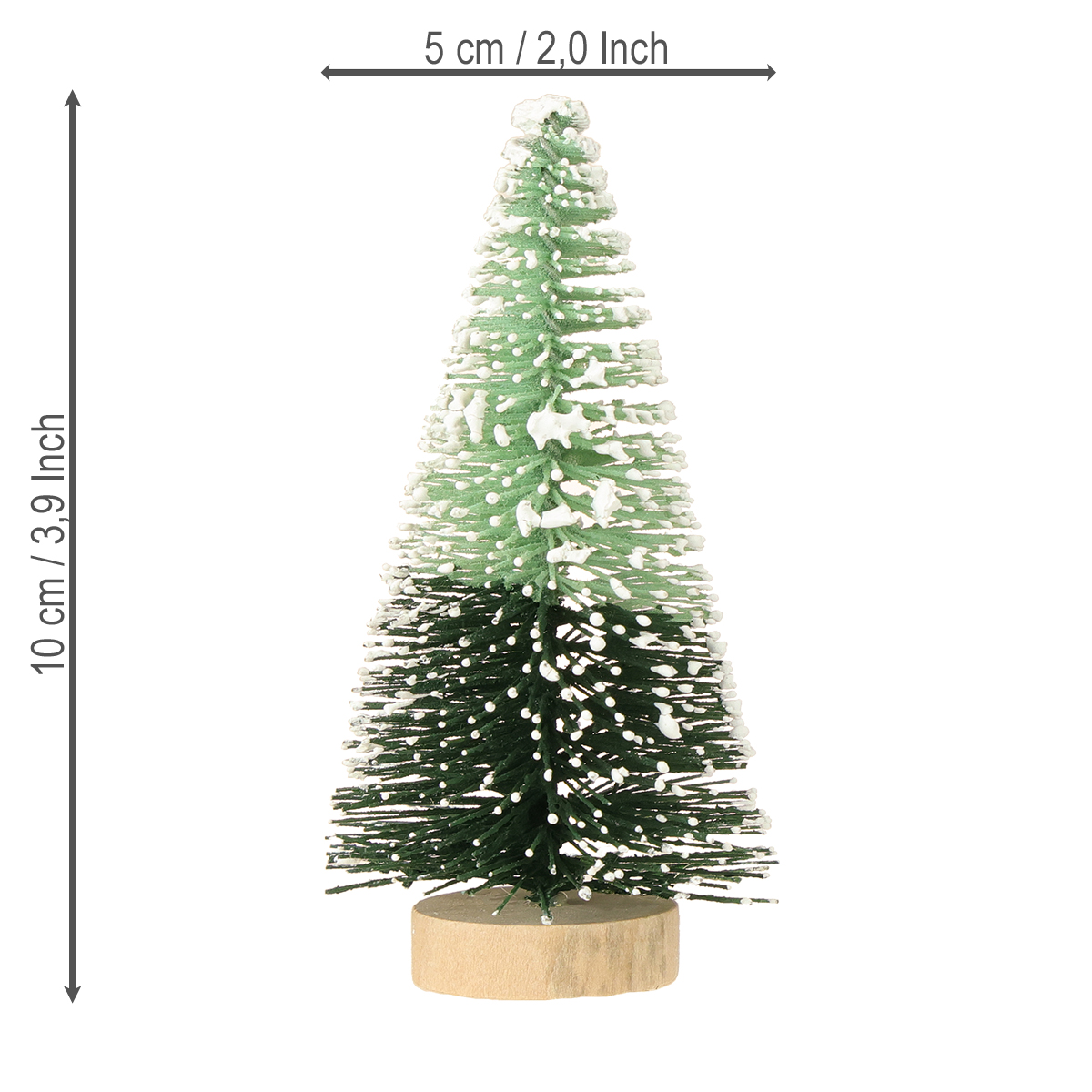 Haben Sie jemals von einem Mini-Tannenbaum geträumt, der das winterliche Wunderland direkt zu Ihnen nach Hause bringt? Unser zweifarbiges Bäumchen mit zarten Schnee-Akzenten zaubert im Handumdrehen eine heimelige Atmosphäre in jeden Raum. Ob auf der Fensterbank, dem Schreibtisch oder mitten auf dem Adventstisch – diese kleinen, detailverliebten Bäumchen sind wahre Eyecatcher. Oben hellgrün, unten dunkelgrün, mit zarten Akzenten aus Kunstschnee versehen, stehen diese schneebedeckten Bäumchen sicher auf einer naturbelassenen hellen Holzscheibe. Perfekt für Miniatur-Weihnachtsdörfer, um etwas Magie hinzuzufügen oder als charmante Ergänzung für Ihre Geschenkverpackungen. Möchten Sie Ihrem Schreibtisch einen Hauch Winter verleihen? Oder suchen Sie eine schöne Möglichkeit, ein Regal zu dekorieren? Mit diesen Mini-Tannenbäumen ist alles möglich!