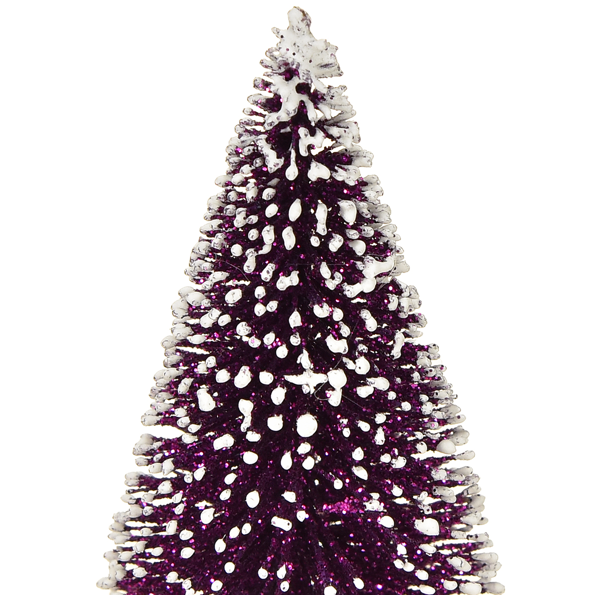 Deko-Tannenbaum in Lila mit Schneespitze auf rustikalem Holzfuß 15cm 3St.