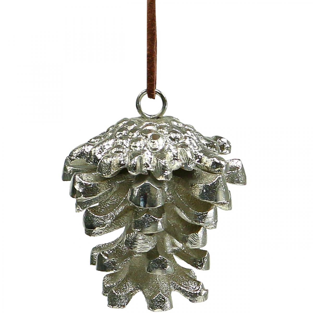 Produktname: Tannenzapfen Deko Zapfen zum Aufhängen Silber H6cm
