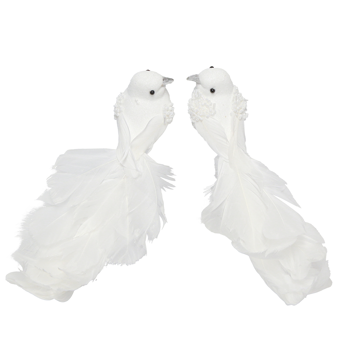 Hochzeitsdeko Tauben als Taubenpaar auf Clip Weiß 22cm 2 St