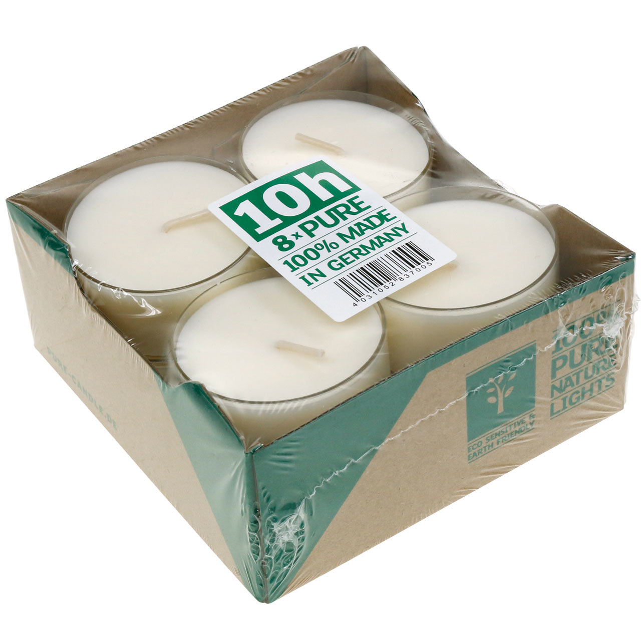 Teelichter Pure Nature Lights Brenndauer 10 Stunden Kerzen Rapswachs 8 St