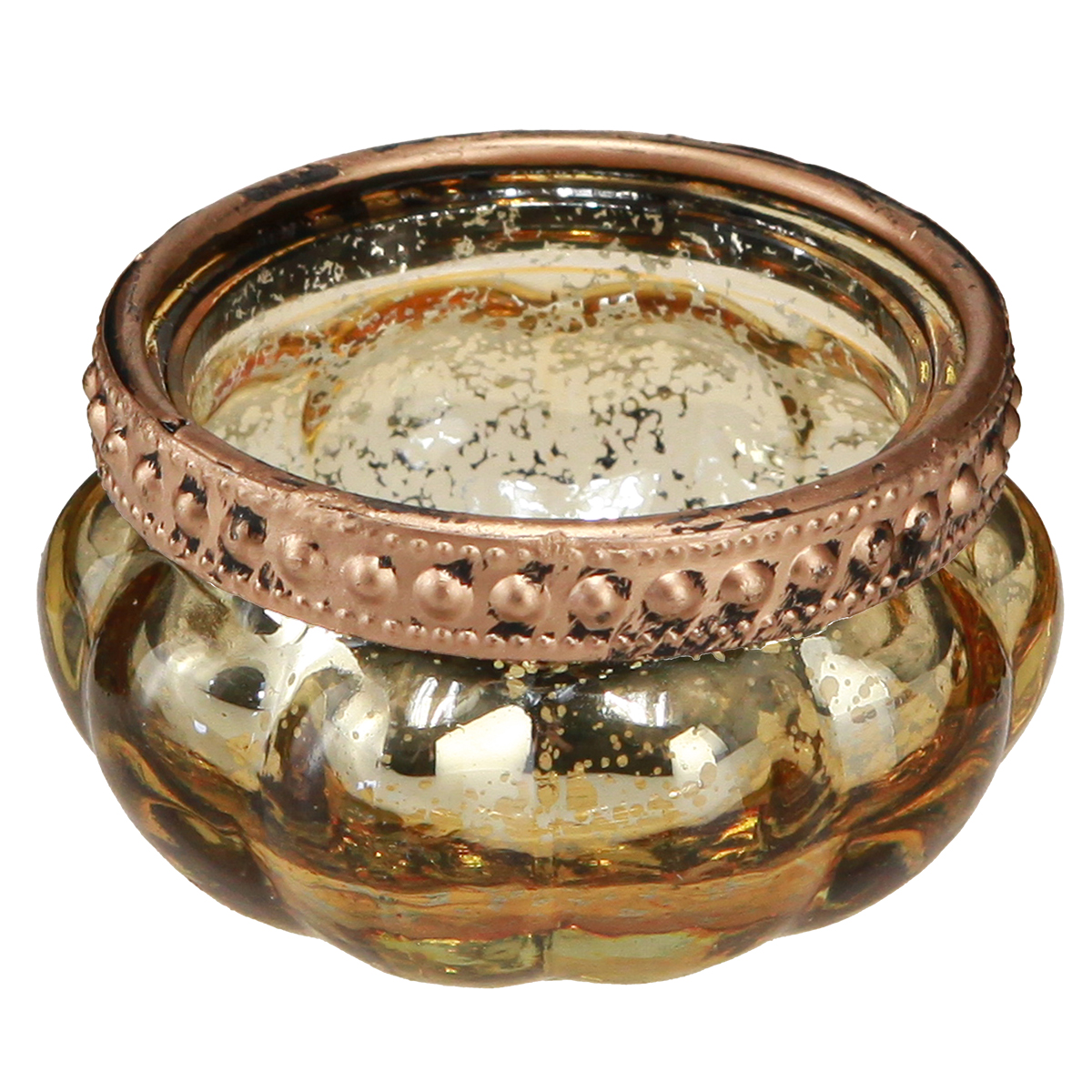 Produktname: Teelichtglas Champagner Antik Gold mit Metallrand Ø6cm H3,5cm