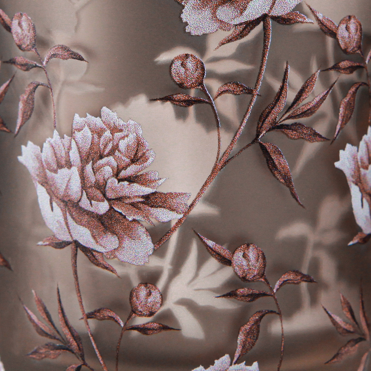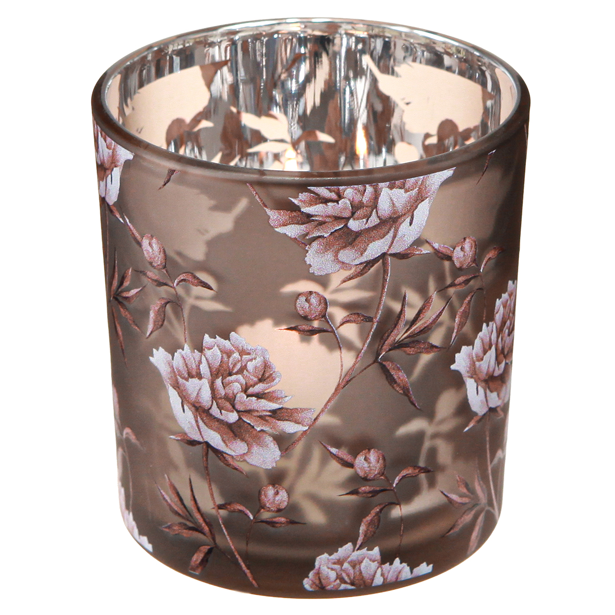 - Elegantes Design: braunes Glas mit silberner Innenschicht und 3D-Nelkenmotiv
