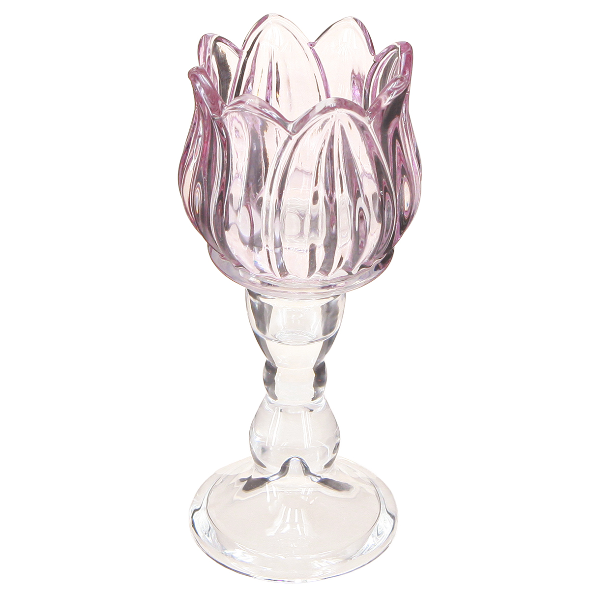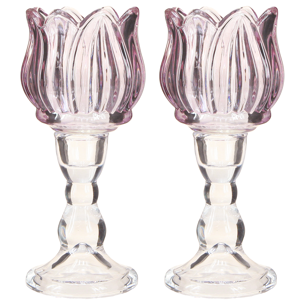 Teelichtglas Tulpe Teelichthalter Glas Lila Ø7cm H16cm 2St