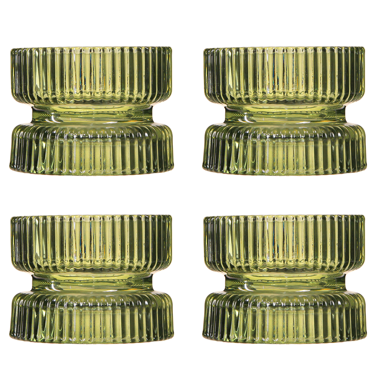 Teelichthalter Glas Deko Geriffelt Grün Ø9cm H7cm 4 St
