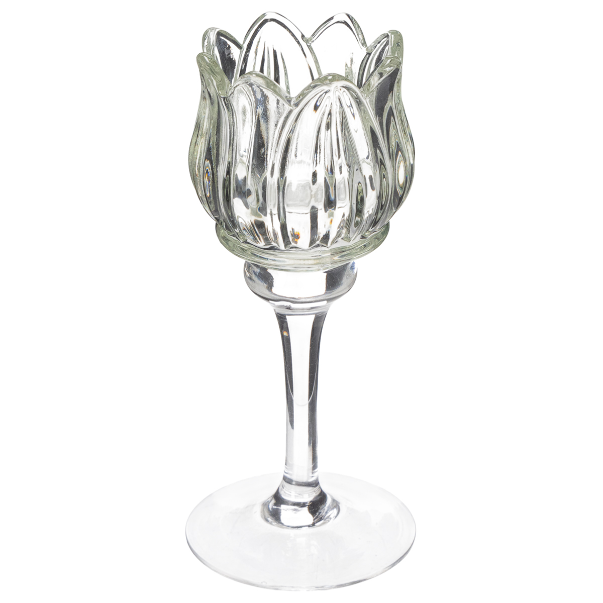 Teelichthalter Glas dekorative Blumenform für stilvolles Ambiente 17cm