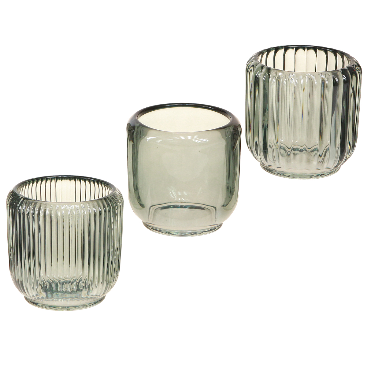 Teelichthalter Glas in Grau Rillen Dekor 8cm 6 St