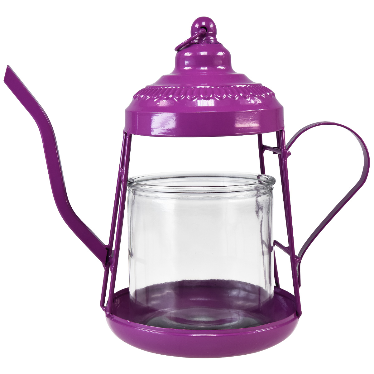 Erschaffen Sie ein einladendes Ambiente mit dem Windlicht in Form einer Teekanne in Pink, dem perfekten Accessoire für Ihre Frühlingsdeko und Sommerdeko. Die Kombination aus einem pinken Metallrahmen und einem klaren, leicht grünblau schimmernden Glas verleiht diesem Windlicht seinen nostalgischen Charme und macht es zu einer stilvollen Ergänzung für jede Tischdeko.