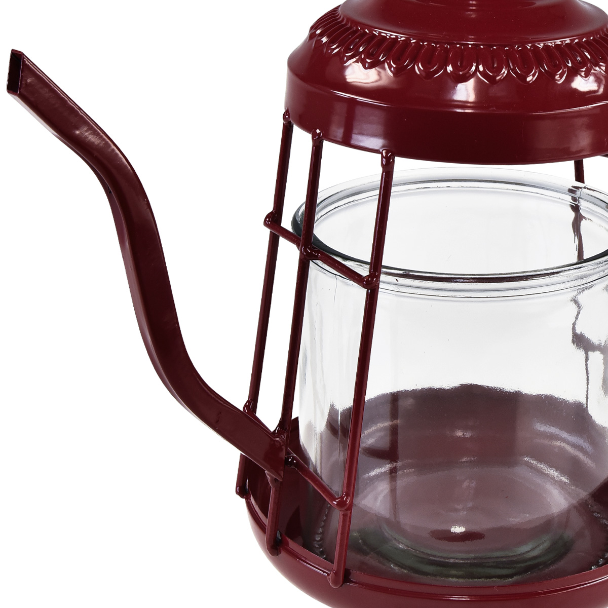 Teelichthalter Glas Windlicht Teekanne Rot Ø15cm H26cm