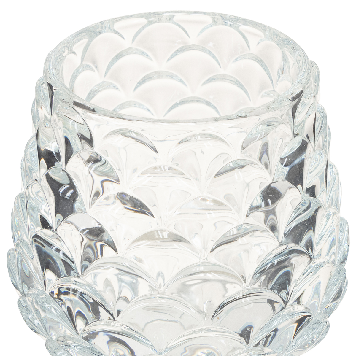 Manchmal sind es die kleinen Details, die den Unterschied ausmachen. Sie lieben es, mit Licht und Dekoration eine wohnliche und einladende Atmosphäre zu schaffen? Dann werden Sie die "Glasteelichthalter Glas Zapfen mit Fuß" lieben! Dieses Set, bestehend aus zwei unterschiedlich hohen Teelichthaltern, überzeugt durch schlichte Eleganz und ein raffiniertes Design, das sich perfekt in unterschiedlichste Wohnstile einfügt. Die klaren Glaslamellen erinnern an einen zauberhaften Tannenzapfen – filigran, stilvoll und zeitlos. Ob als Blickfang im Wohnzimmer, Highlight auf der Festtagstafel oder romantische Lichtquelle bei einem gemütlichen Abend: Diese Teelichthalter sind ein echtes Multitalent!