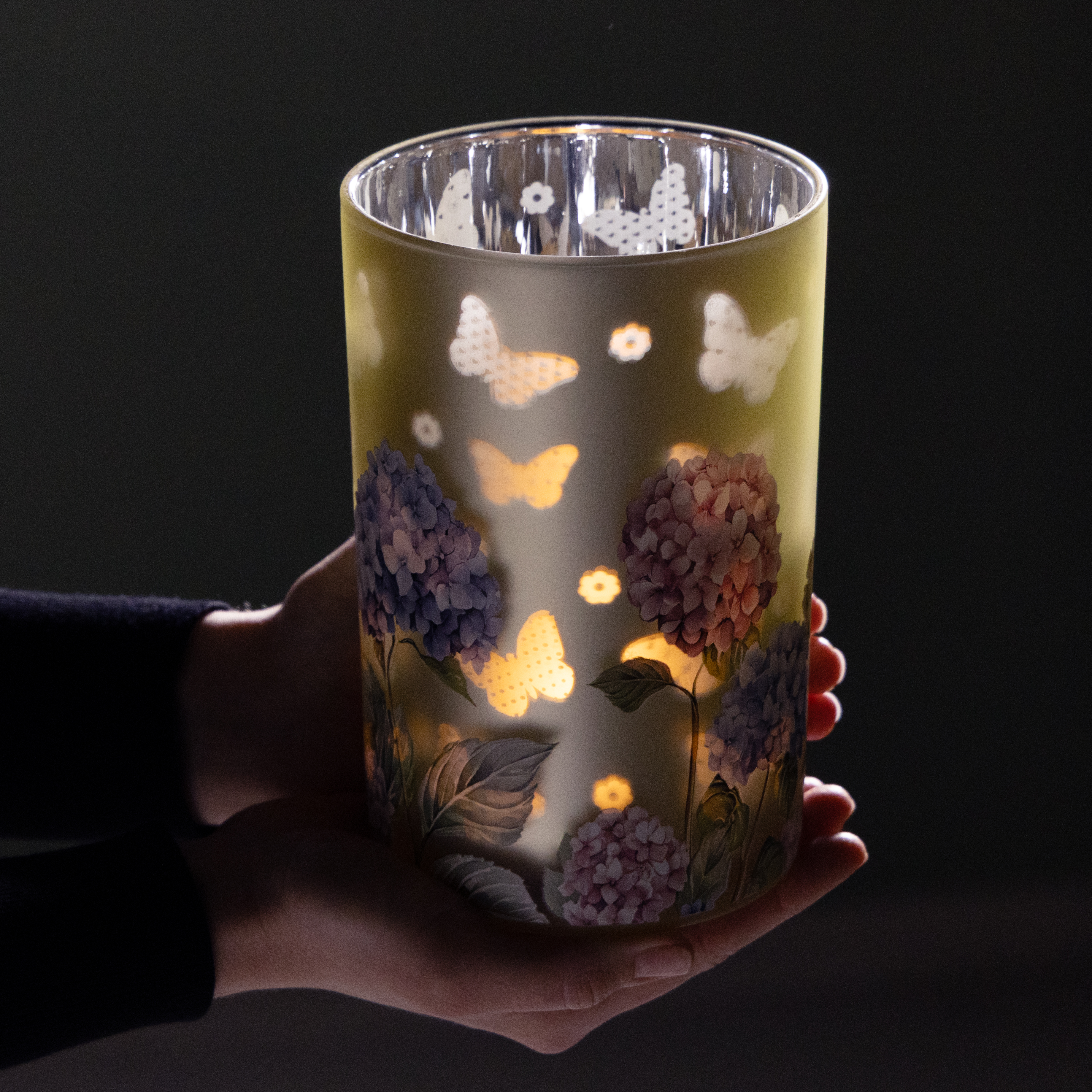 Teelichthalter Glasdekoration mit Blütenmotiv für harmonische Wohnmomente 18cm