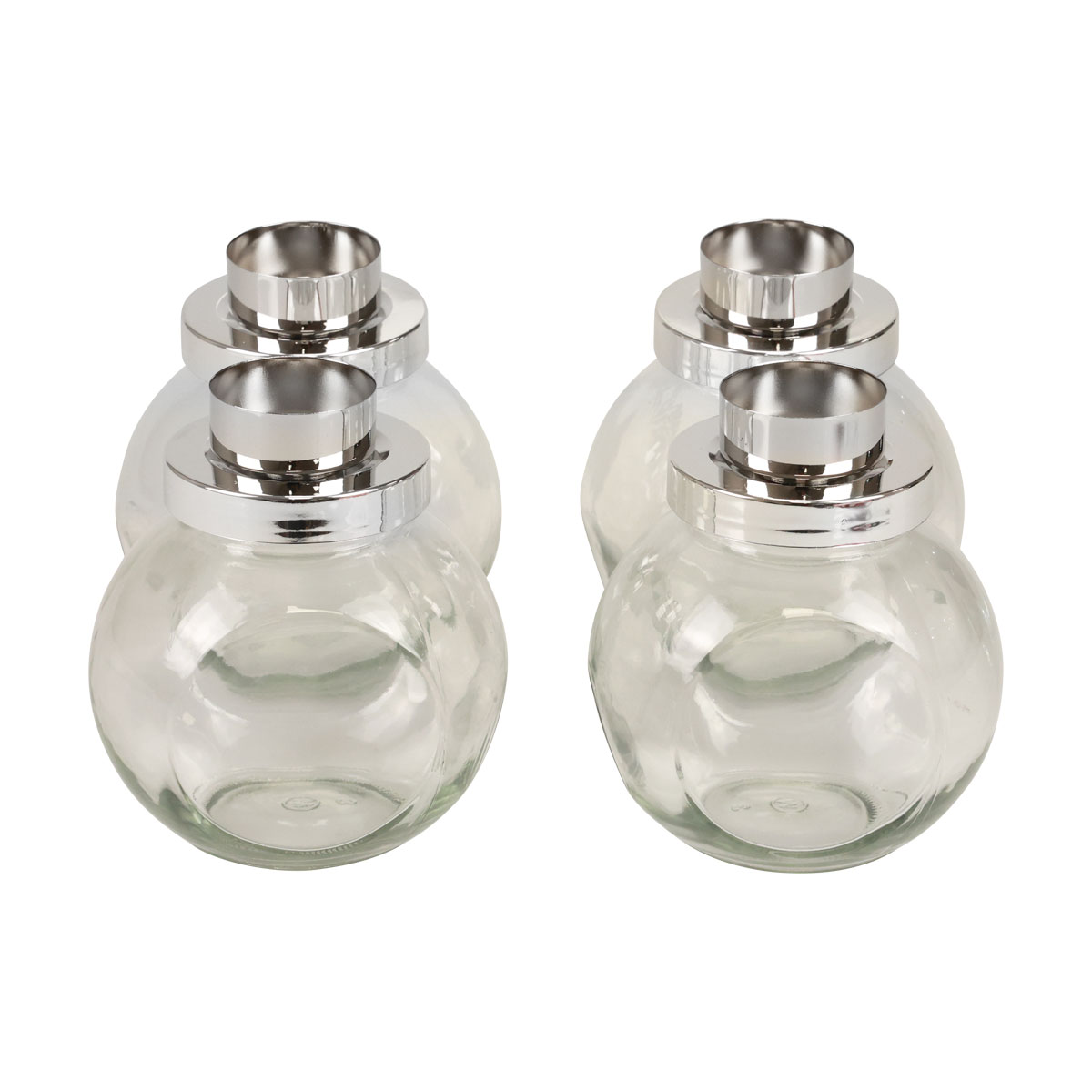 Teelichthalter Kerzenständer Glas Metall Silber Ø10,5cm 4St