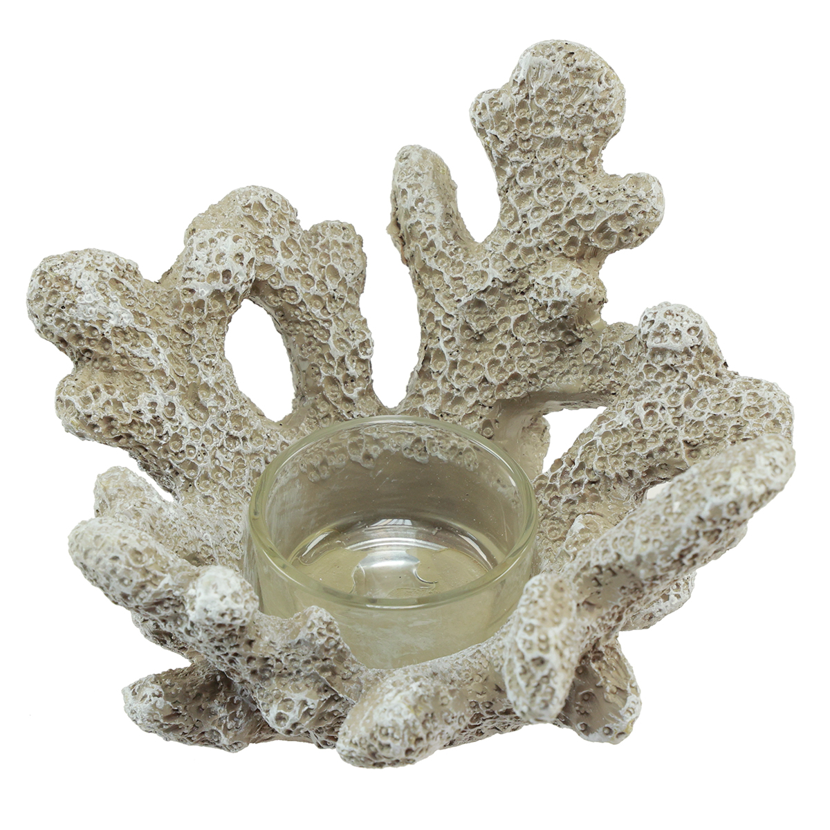 Teelichthalter Korallen Deko Maritim Grau Ø12cm H8cm