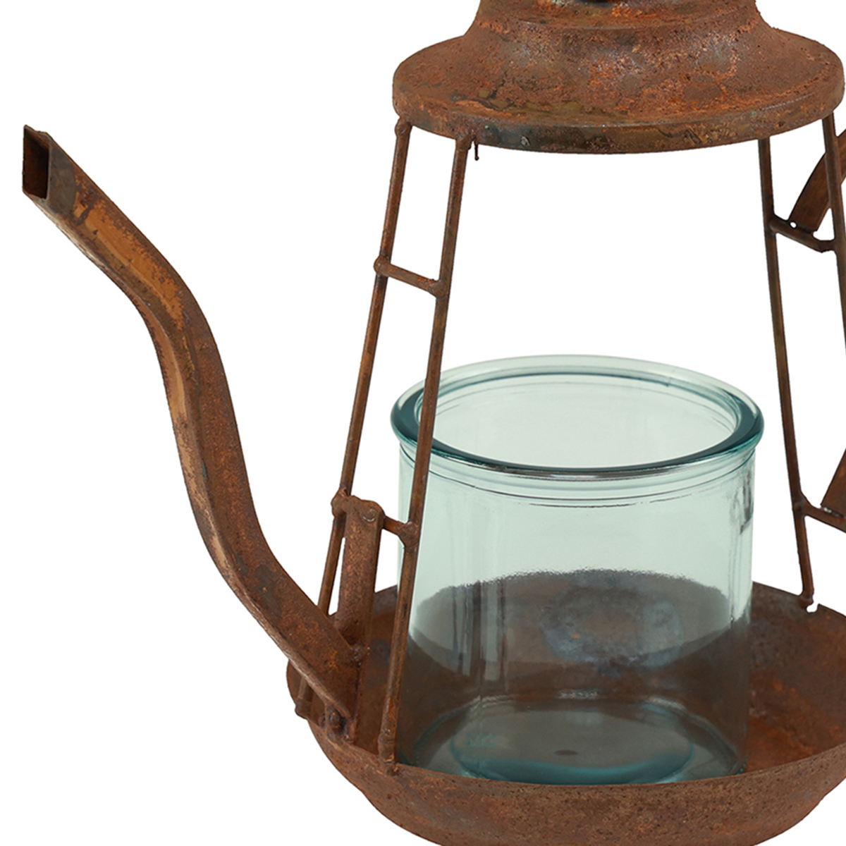 Teelichthalter Rost Glas Windlicht Teekanne Ø13cm H22cm