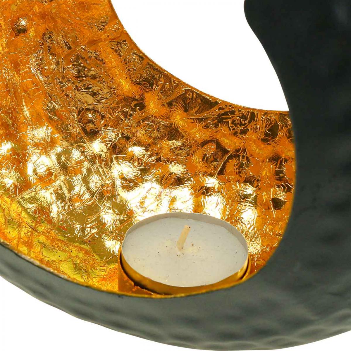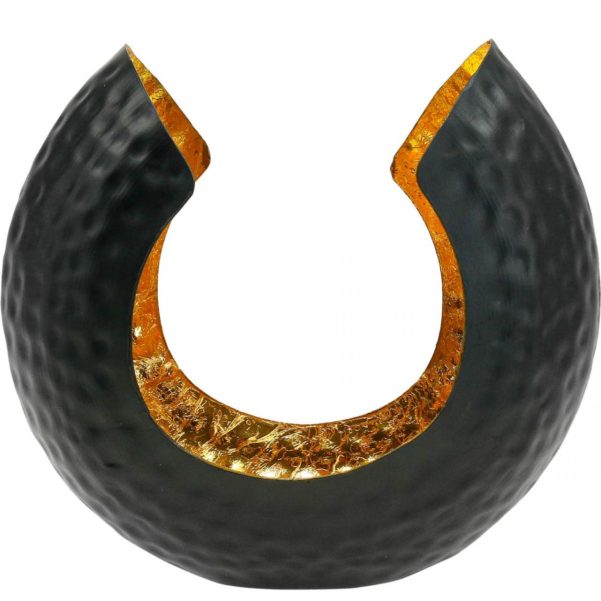 Produktname: Teelichthalter Schwarz Gold Tischdeko Metall 19×11×17cm