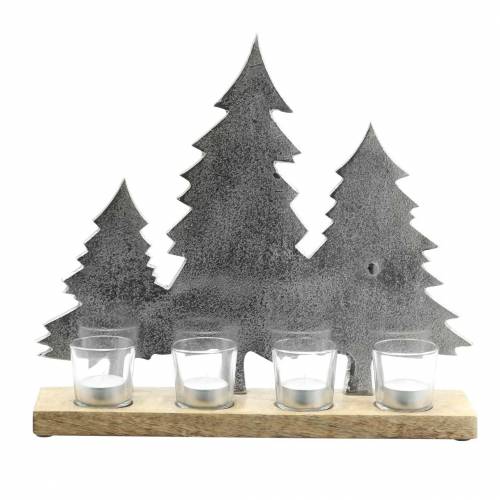 Teelichthalter Tannen Mango, Metall Silbern 38×34cm 4 Teelichtgläser