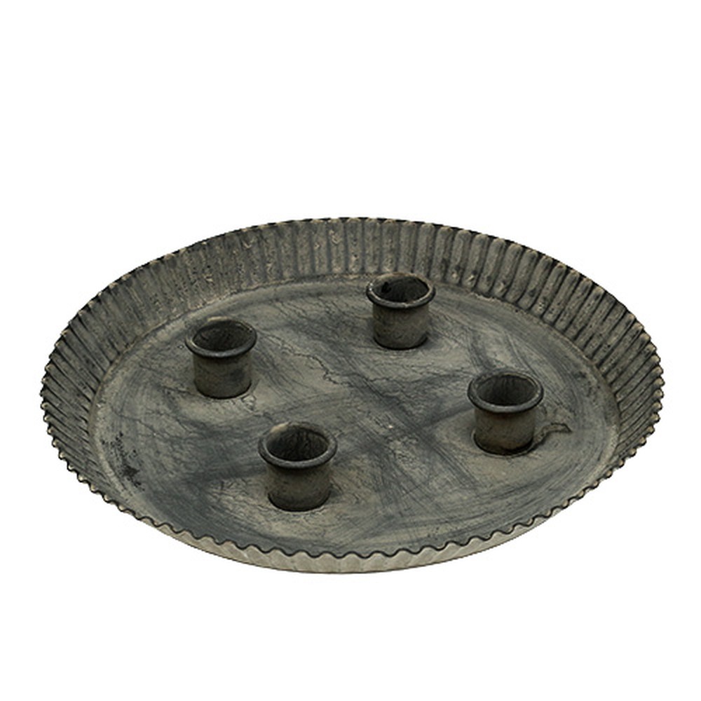 Teller mit 4 Kerzenhaltern Ø25cm H3cm Grau