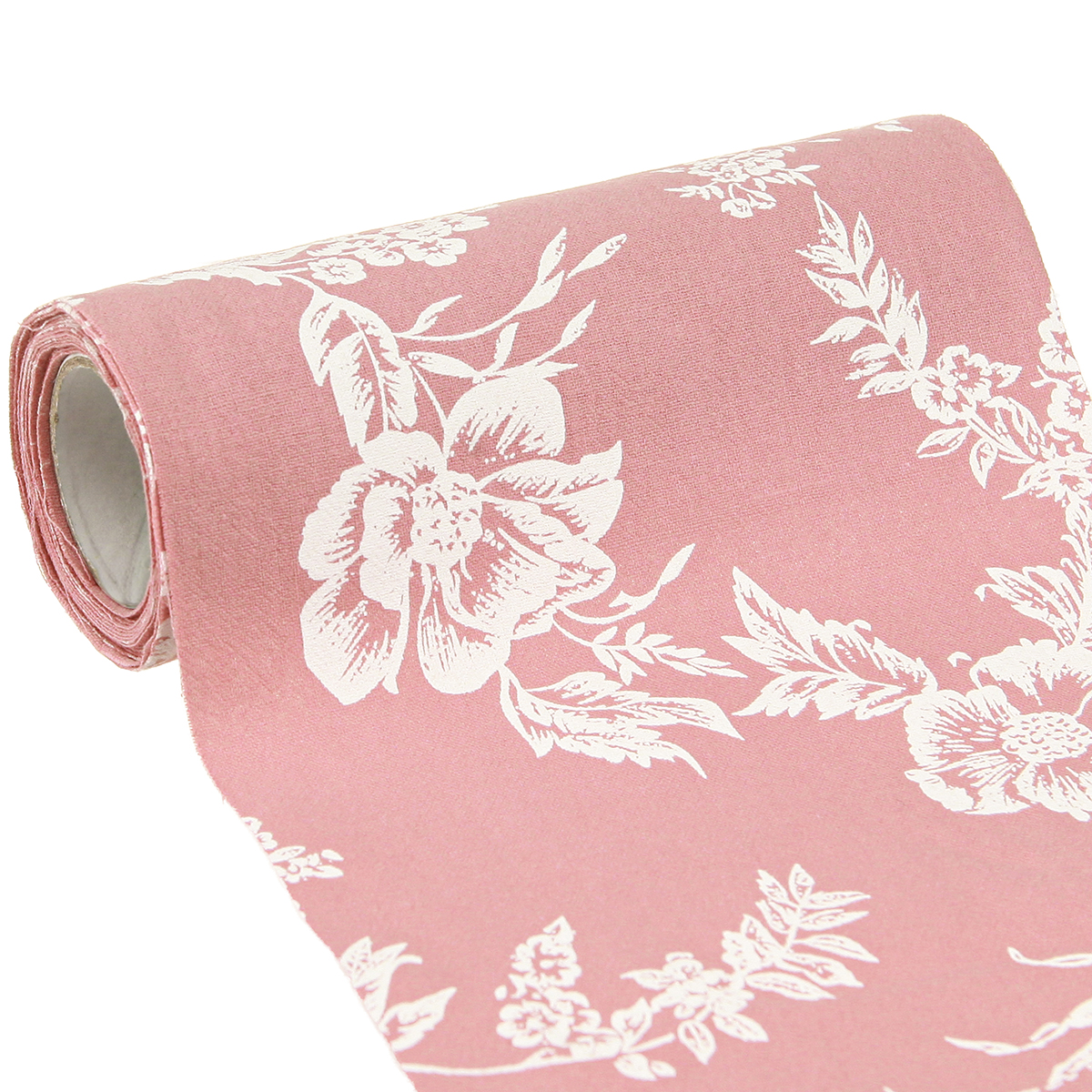 Tischband Blumenmuster Tischläufer Baumwolle Rosa 15cm 3m