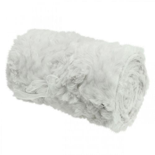 Sie erhalten das Fellband in Weiß mit einer Gesamtlänge von etwa 200 Zentimetern und einer Breite von 15 Zentimetern in aufgerollter Form.