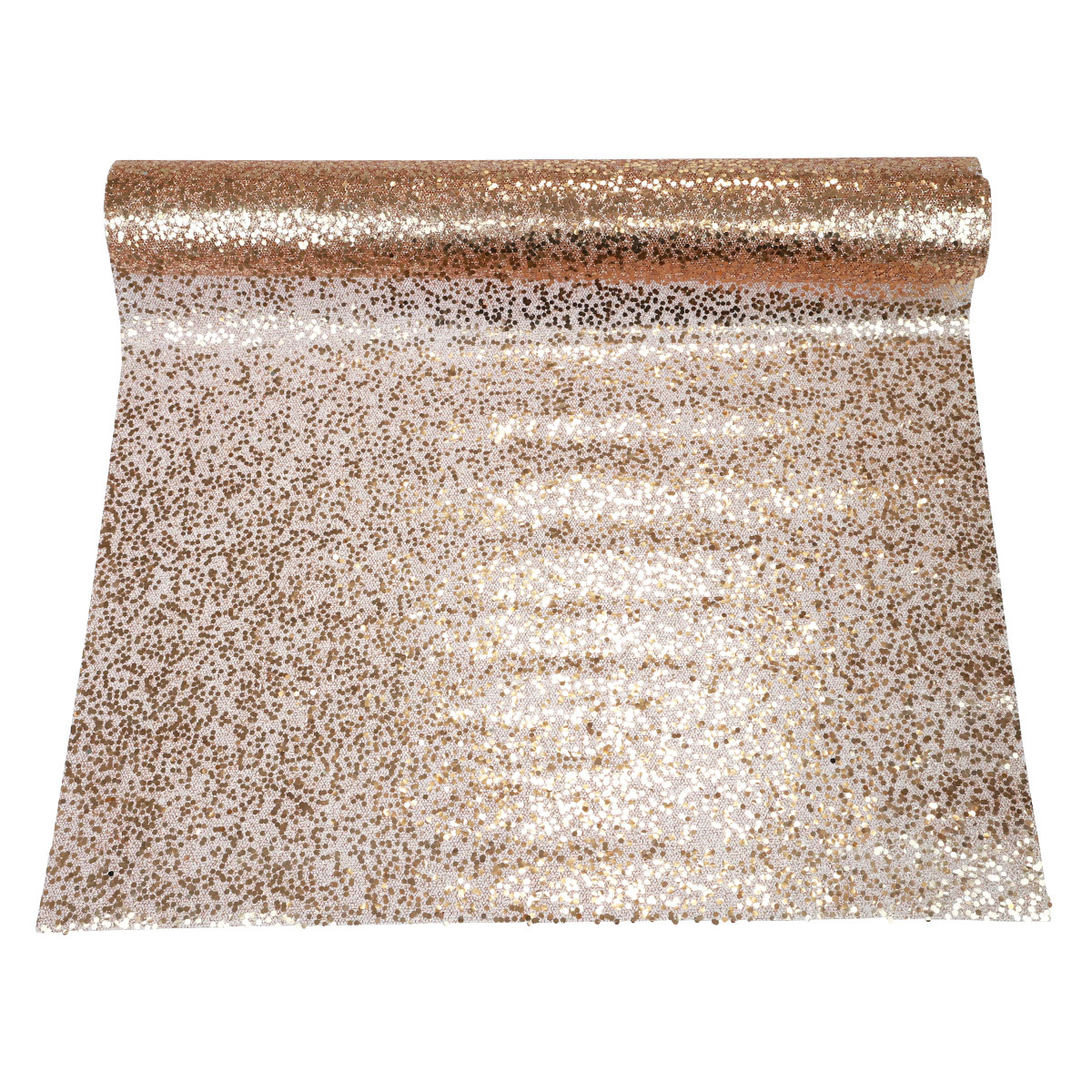 Das Gittergewebe ist über und über mit Pailletten in Rosé-Gold überzogen. Und so schimmert und glitzert der Tischläufer zu Weihnachten oder zu Silvester in seinem zauberhaften Glanz.