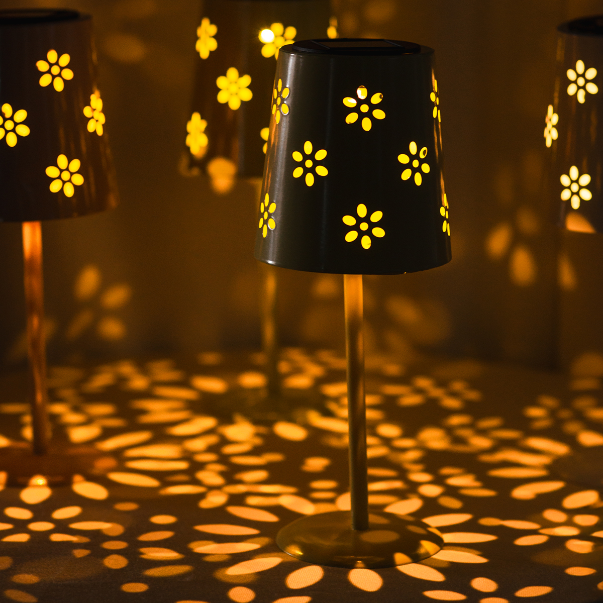 Produktname: Tischlampe mit Blumenmuster Solarbetrieben für romantische Gartenbeleuchtung 28cm