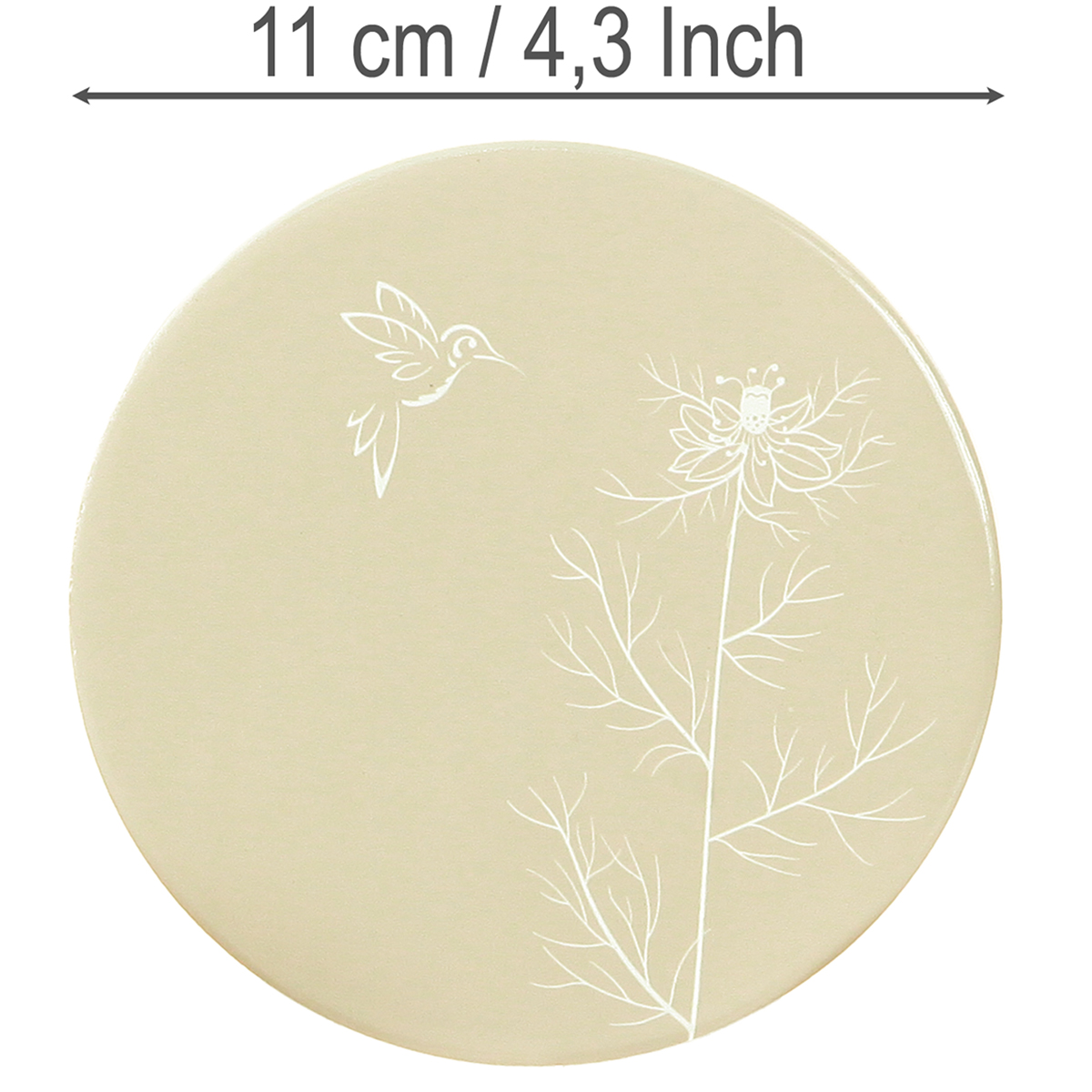 Verleihen Sie Ihrem Zuhause mit den bezaubernden Tischuntersetzern eine erfrischende Frühlingsatmosphäre. Diese dekorativen Frühlingsuntersetzer vereinen Kunst und Funktionalität auf harmonische Weise und sind die perfekte Ergänzung für Ihre Tischdeko im Frühling. Das elegante Design mit bezaubernden Vogel- und Blumenmotiven bringt die Schönheit der Natur direkt in Ihr Zuhause und schafft eine einladende Atmosphäre. Die runden Tischuntersetzer bestehen aus hochwertiger Keramik mit einer sanften Korkschicht am Boden, die sowohl stilvoll als auch funktional ist.