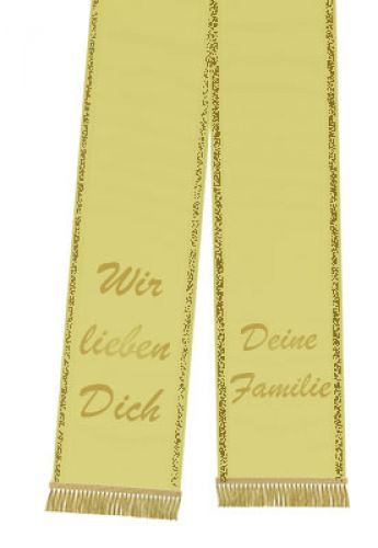 Passende Sprüche für Trauerschleifen, Kranzschleifen Sprüche und Sprüche auf Kranzschleifen sind unsere Spezialität. Texte für Trauerschleifen und Trauerschleifentexte sind die unwiederbringlich letzten Worte, welche einem Angehörigen, Partner oder Freund mit auf den Weg geben werden können. Fertigen Sie Ihren persönliche Trauerschleife für den Trauerkranz oder Trauergesteck in unserem Schleifenkonfigurator.
