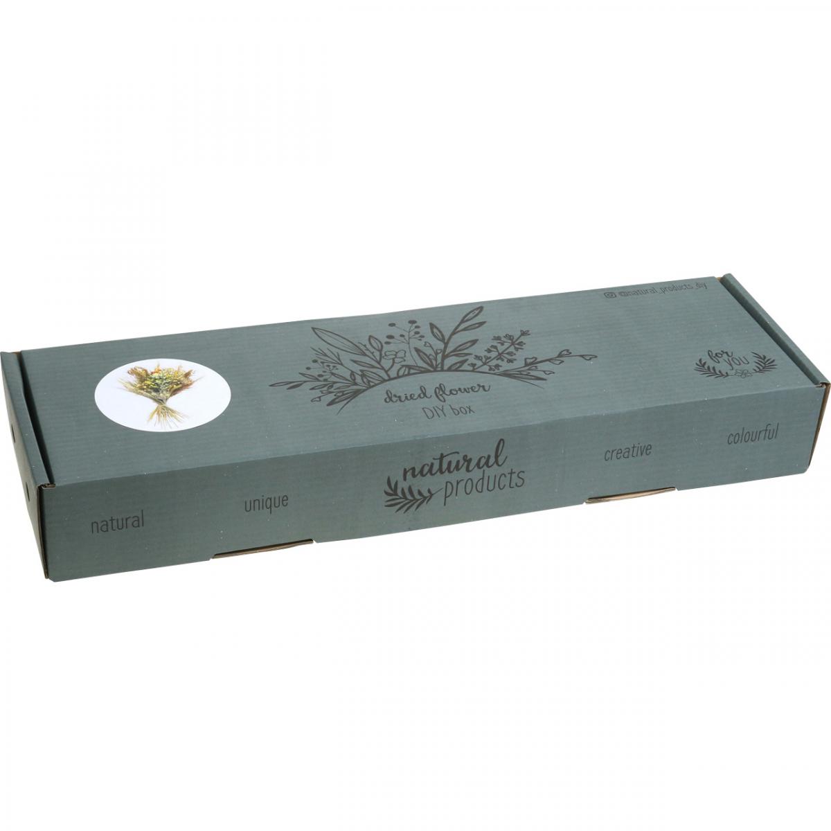 Das Trockenblumen-DIY-Set in Gelb und Naturfarben wird sicher in einem wiederverschließbaren, robusten Karton geliefert.