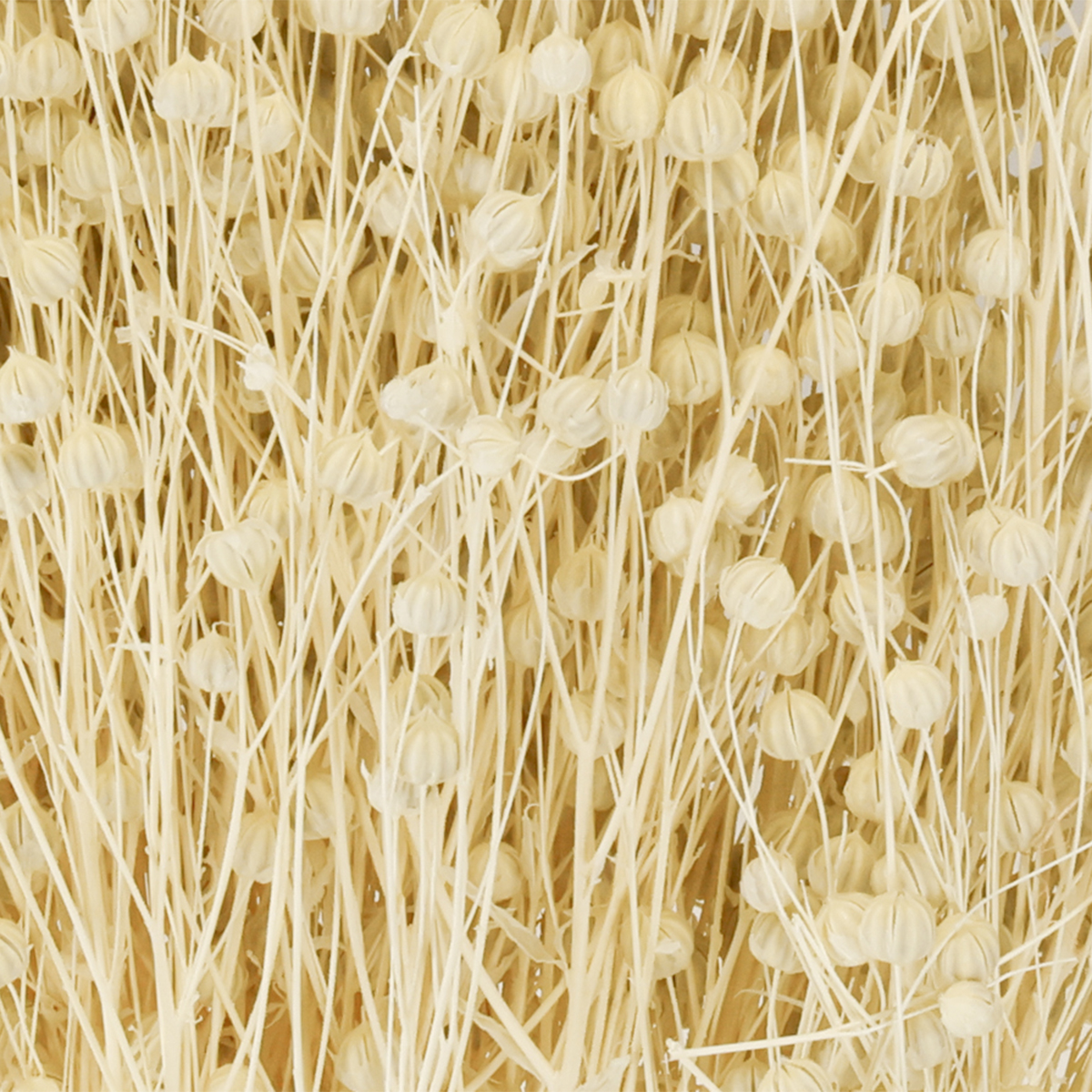Gerade Fans des beliebten Boho-Stils werden dieses Trockengras zum Schmücken eigener Blumengestecke lieben. So lassen sich wunderbar frühlingshafte Blumenkränze zusammenstellen, aber auch sommerliche Türkränze mit dem getrockneten Flachs hübsch machen.
