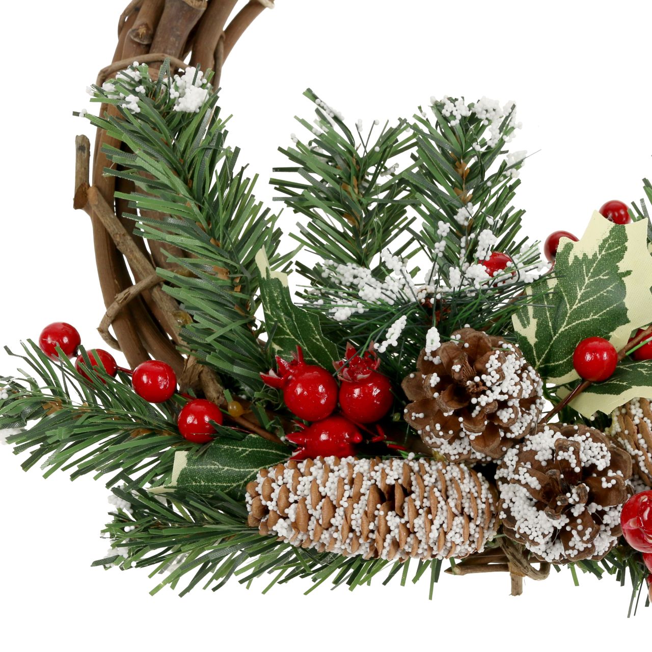 Besonders toll sieht der Adventskranz wegen des verwendeten Materialmixes aus. Für den Kranz selbst wurden echte Äste aus Holz mit einander verflochten. Daran ist ein Weihnachtsgesteck angebracht, das aus echten Zapfen, aber auch aus Kunstsoff Beeren sowie Blättern aus Seidenstoff besteht. Abgerundet wird diese Vielfalt an Formen und Farben von winzigen, weißen Kunststoff-Kügelchen, die wie Schnee aussehen. Mit einer solchen Weihnachtsdeko können Sie im Nu Besinnlichkeit in Ihr Heim, aber auch Ihre Geschäftsräume oder Büros zaubern.